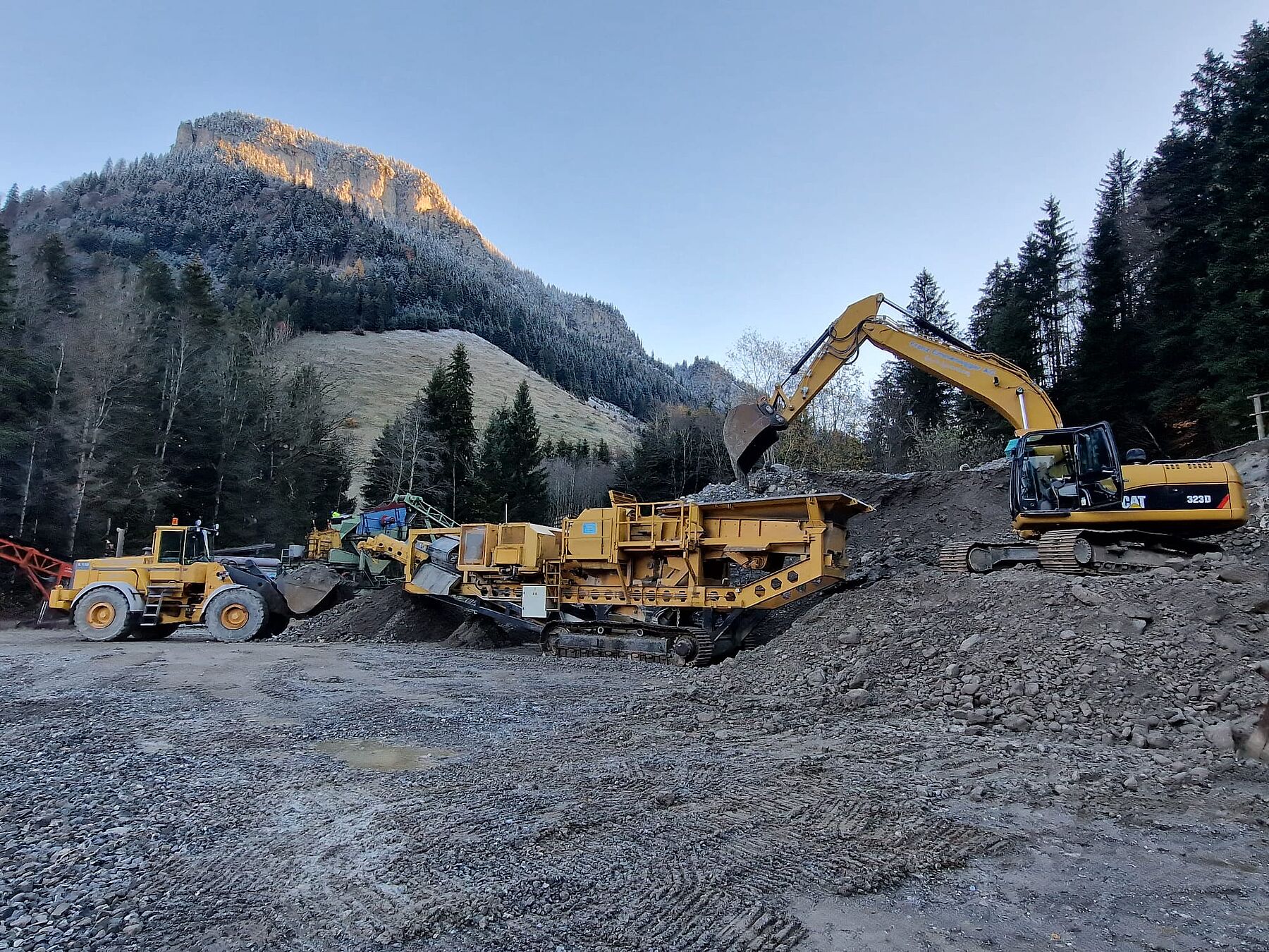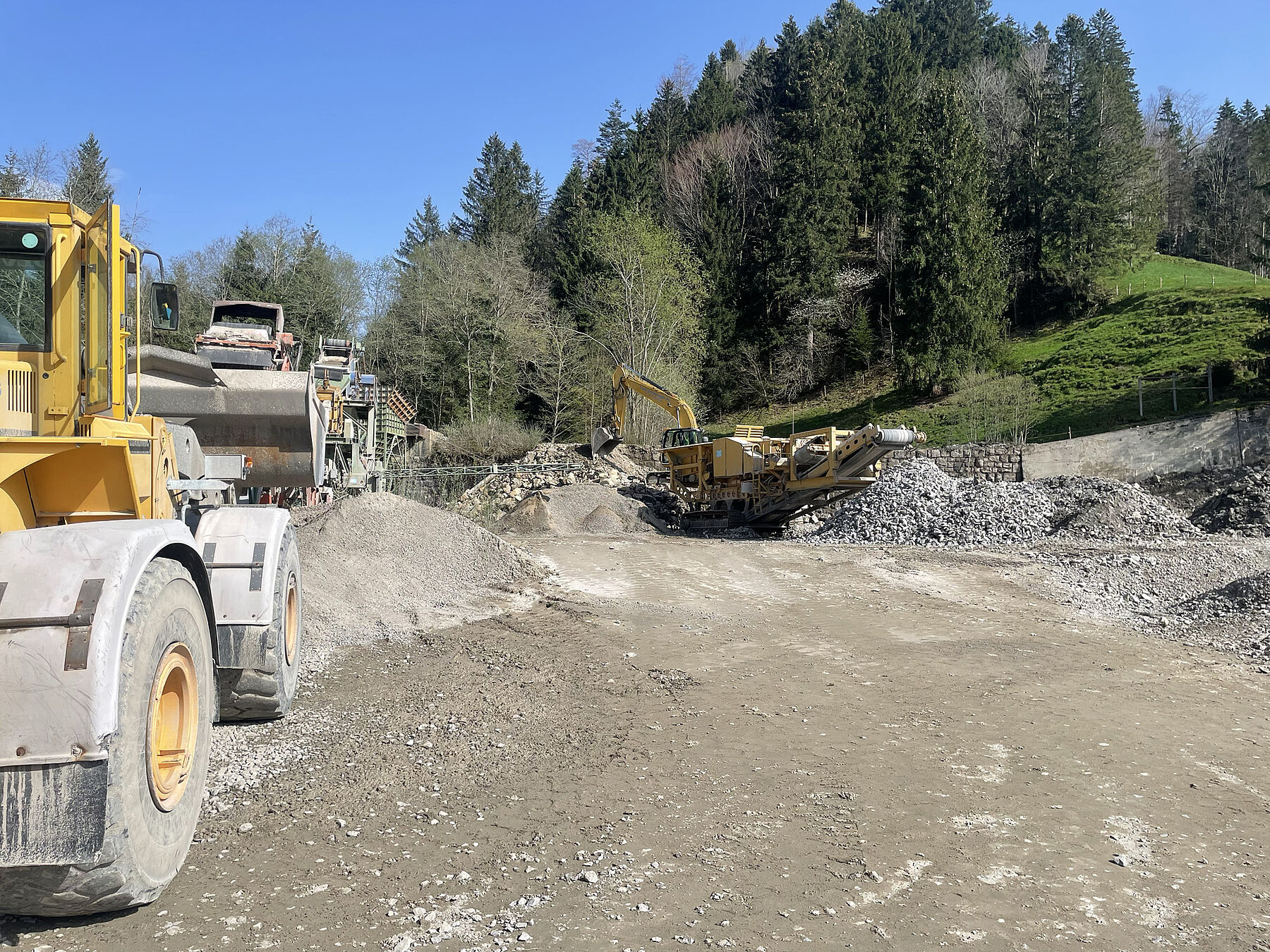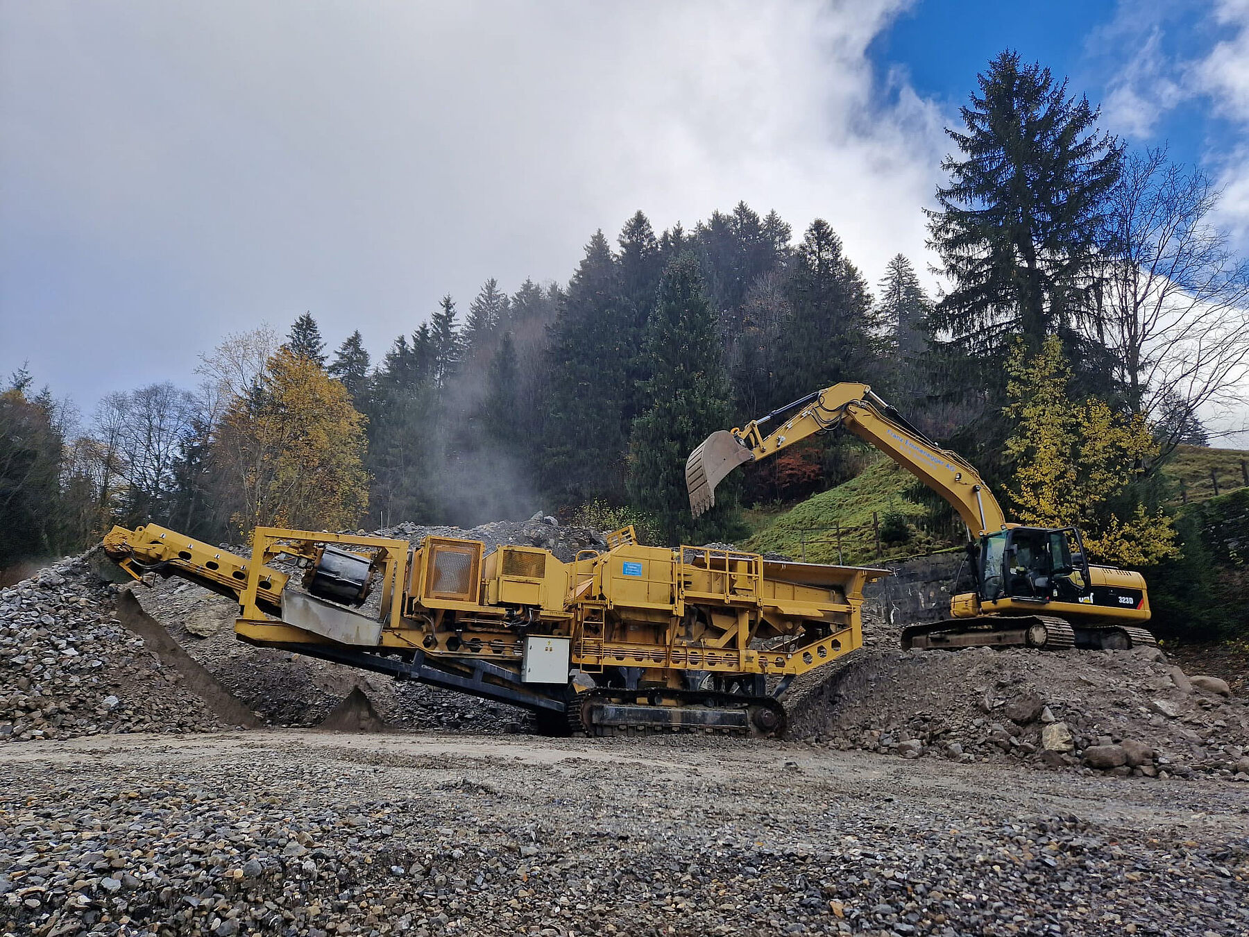 Im Bunihus Flühli bereiten wir Felsbröcke und Primärmaterial zu Koffermaterial, Bölli und Planiematerial auf.