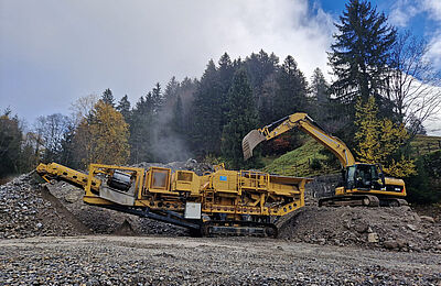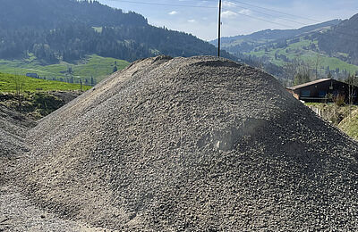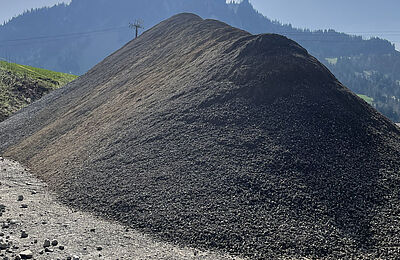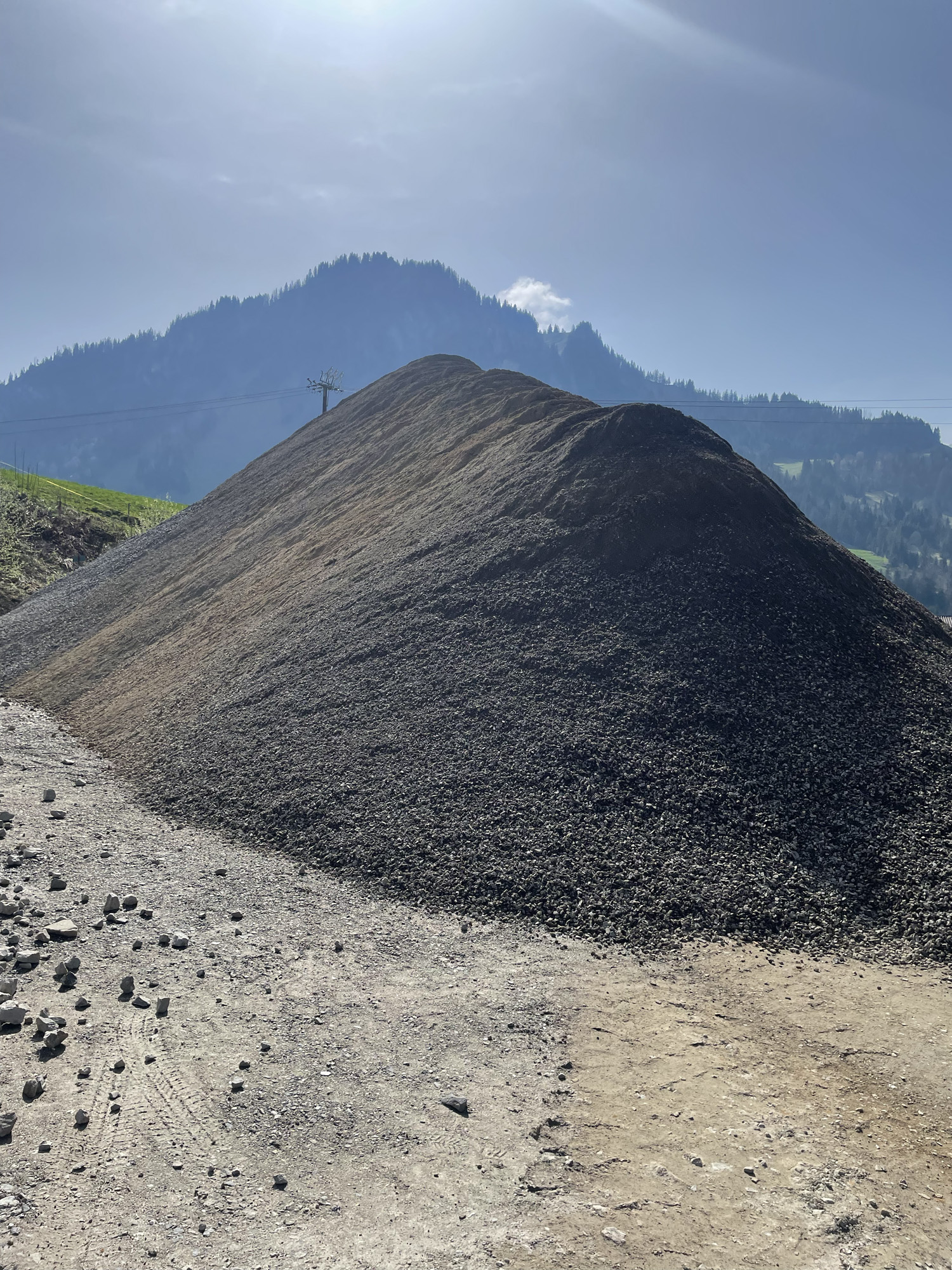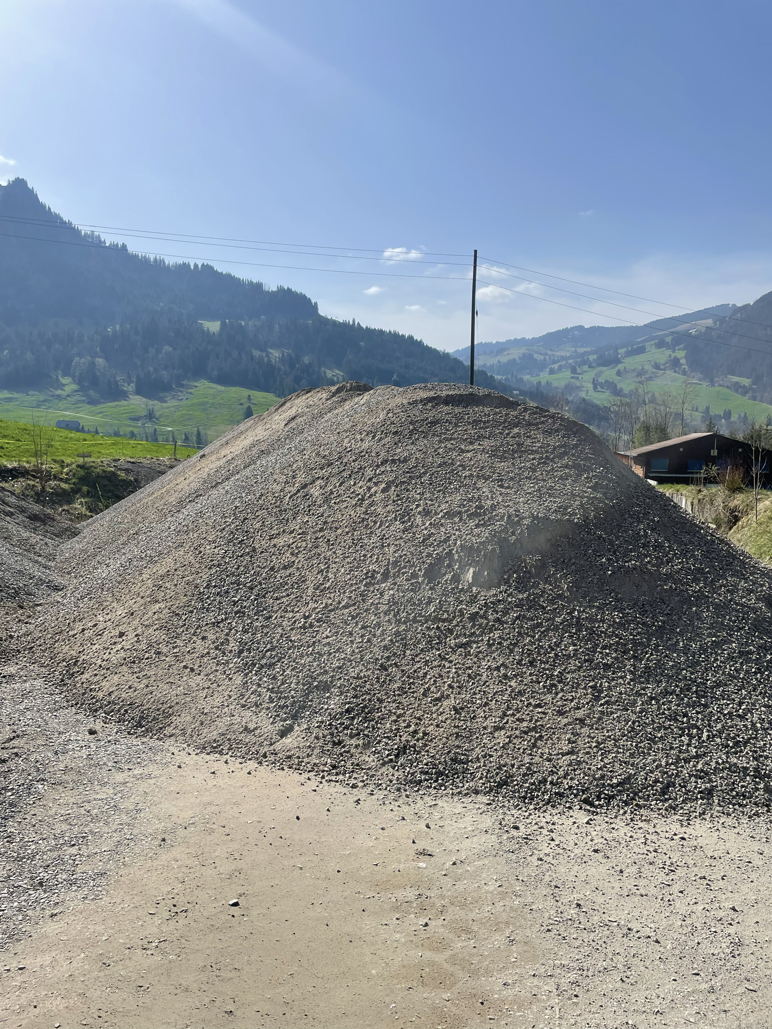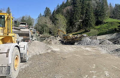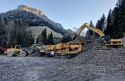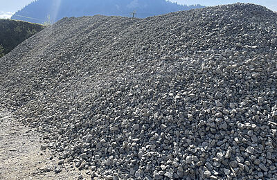 Im Bunihus Flühli bereiten wir Felsbröcke und Primärmaterial zu Koffermaterial, Bölli und Planiematerial auf.