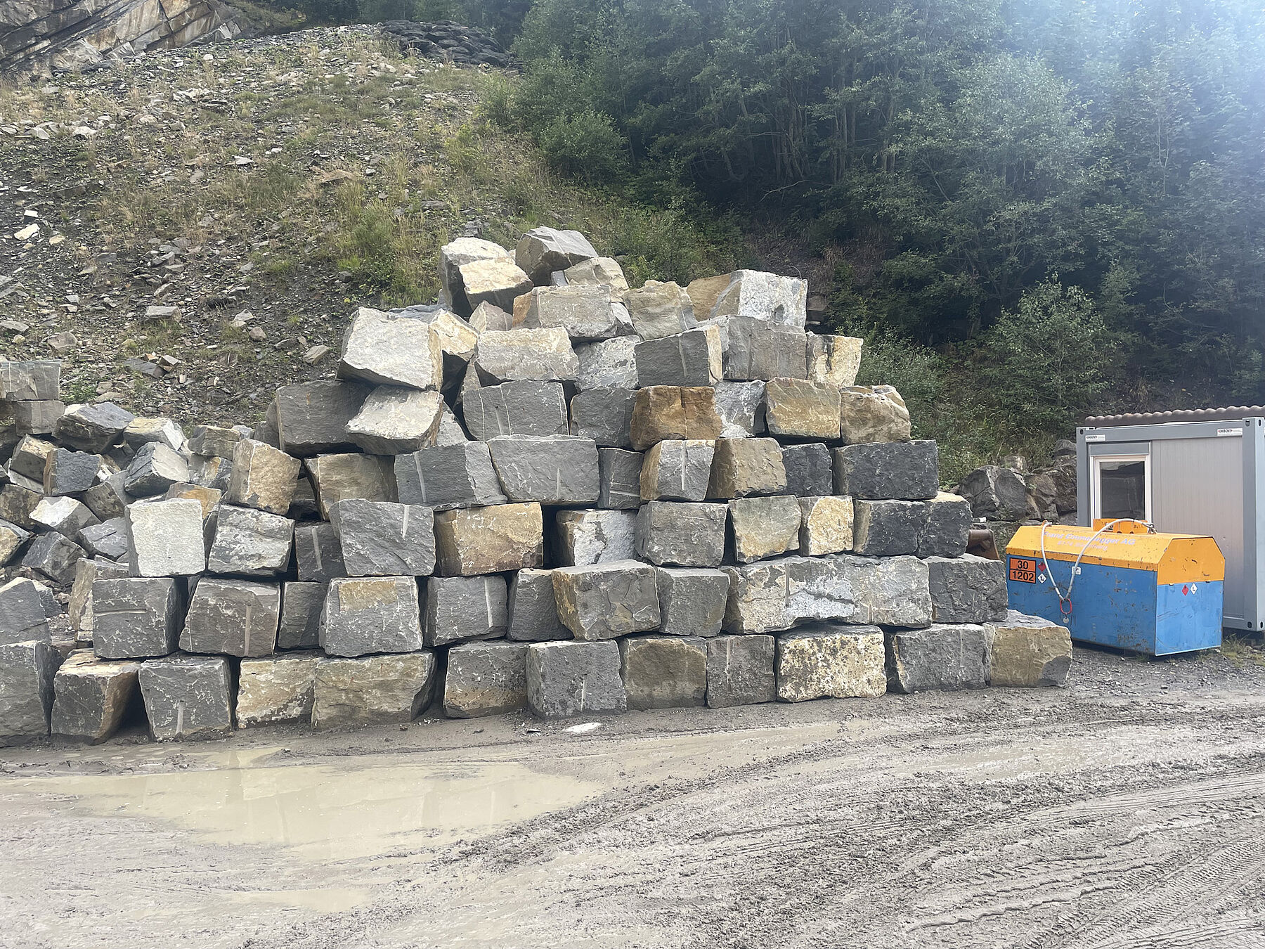 Im Gitziloch werden Wursteine für Bachverbauungen, Garten- und Stützmauern gewonnen.